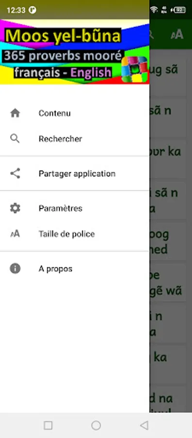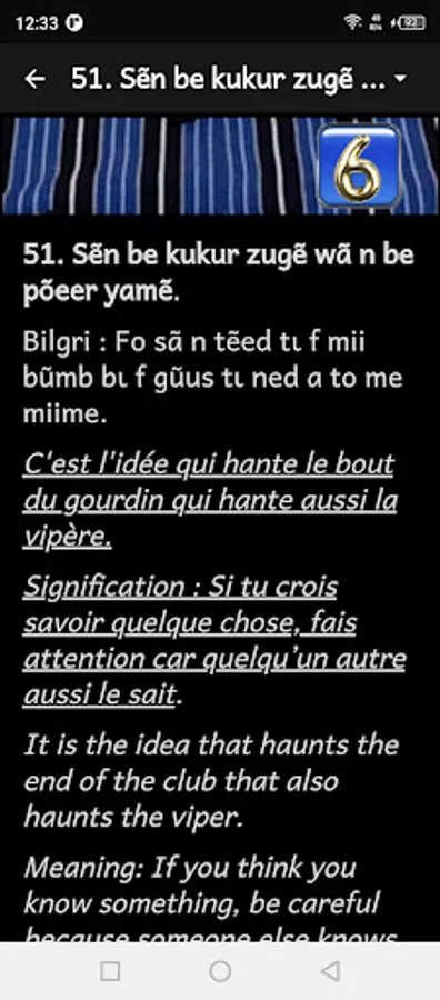 365 proverbs in Mooré, with short explanation in Mooré, French and English.