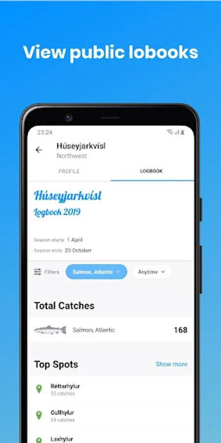• Log your catches in an easy way with detailed information and share with other anglers or keep it to yourself