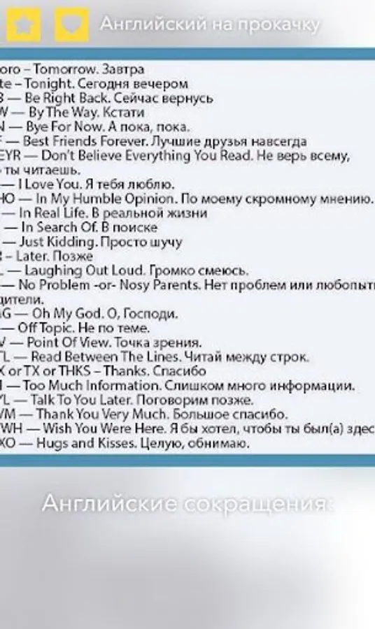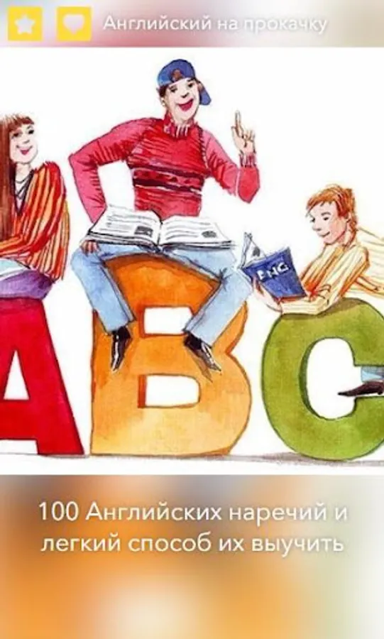 Pump up your knowledge of English. Learn grammar, expand your vocabulary, and learn to understand by ear. Develop all skills. Pursuing at least 20 minutes a day you will already see the results!
