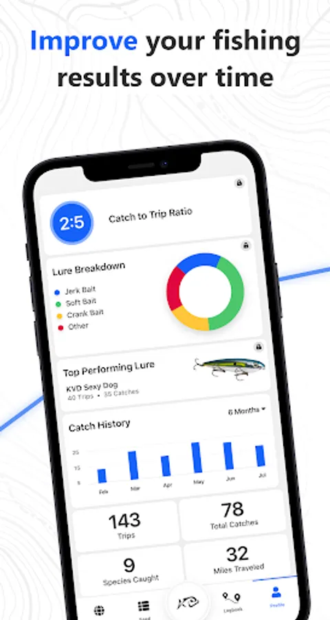 - Fishing Stats tracker to compare fishing performance over time using trip, catch, and tackle statistics.