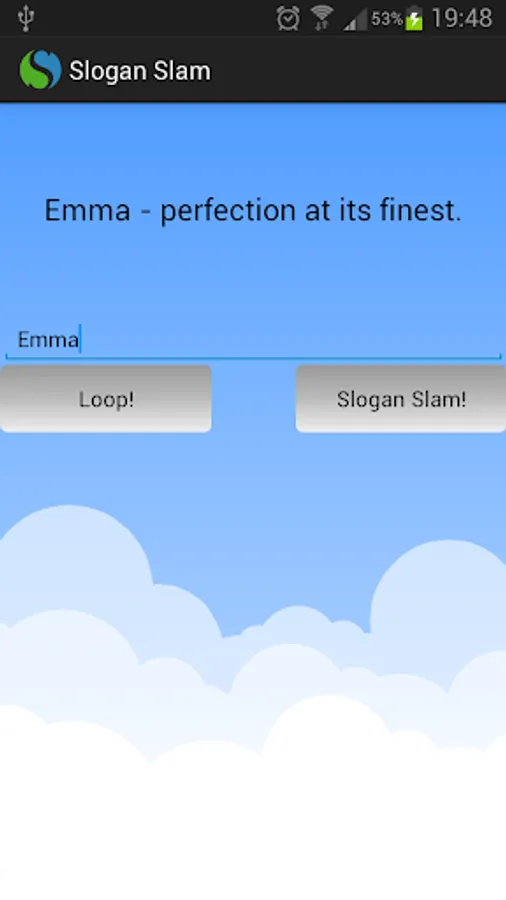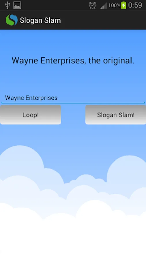 Slogan Slam, a free slogan generator for Android. Create your slogans to promote your new product or company, to praise your loved ones or just for goofing around.