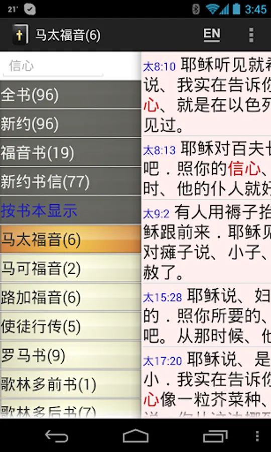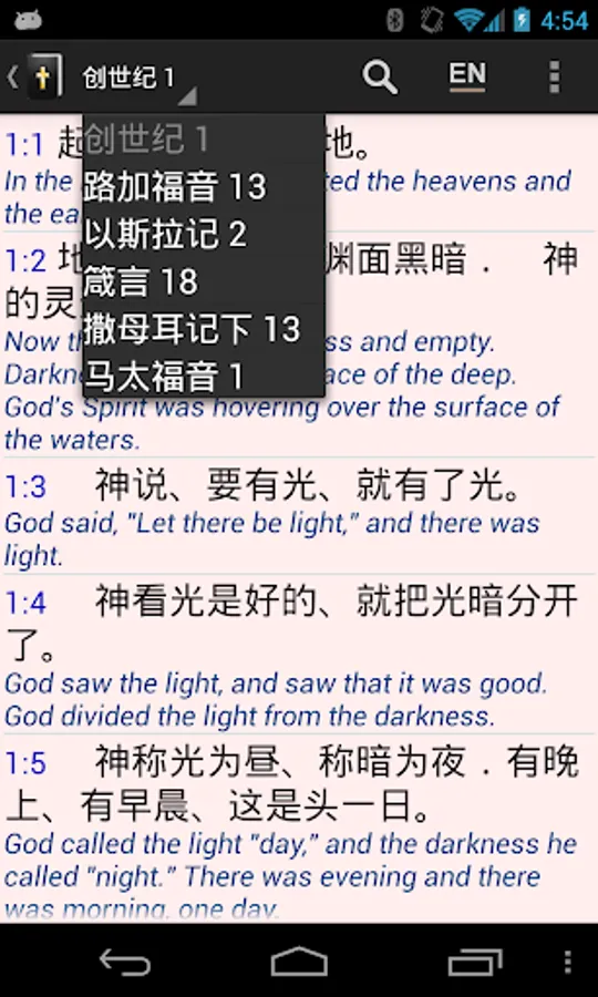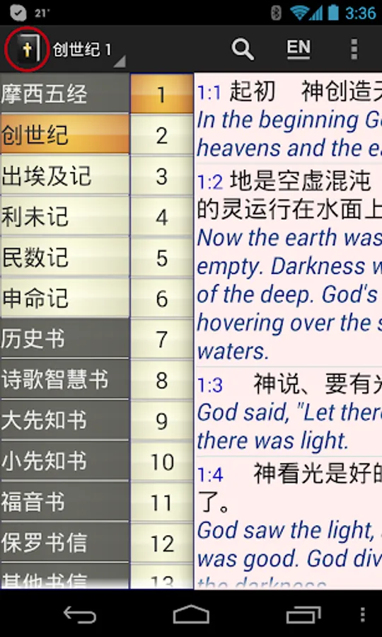 2. Fast locate verses using the left sliding menu( click the Bible icon).