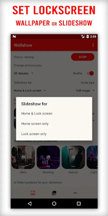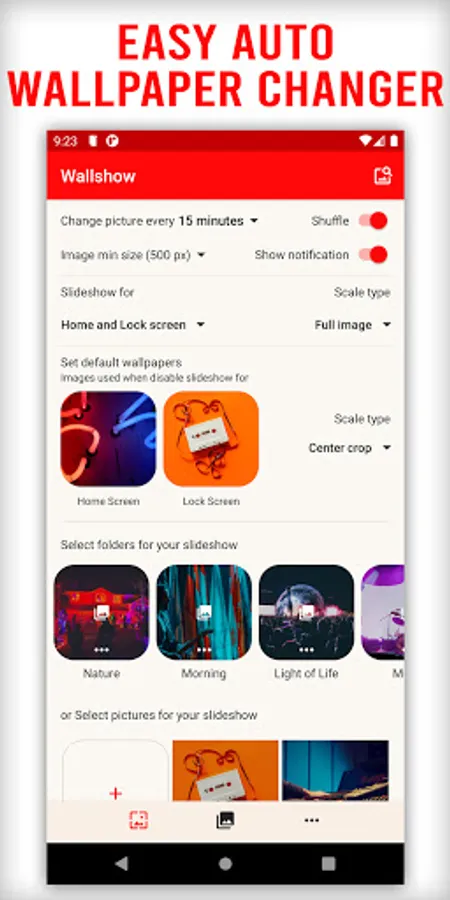 Wallshow allow you to set auto change slideshow or wallpaper for Lockscreen and/or Home screen with a super easy step.