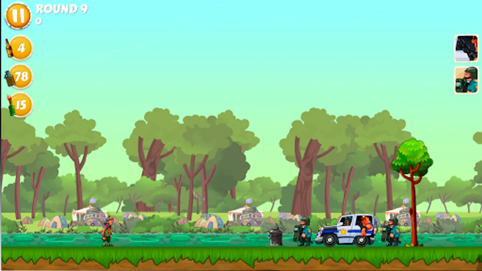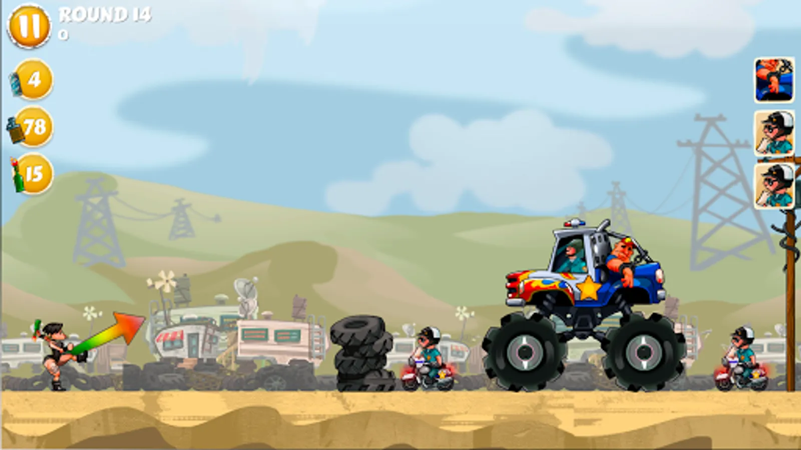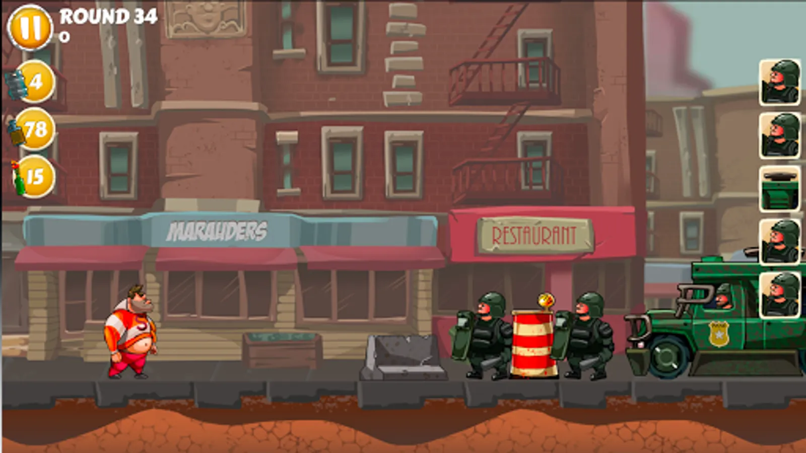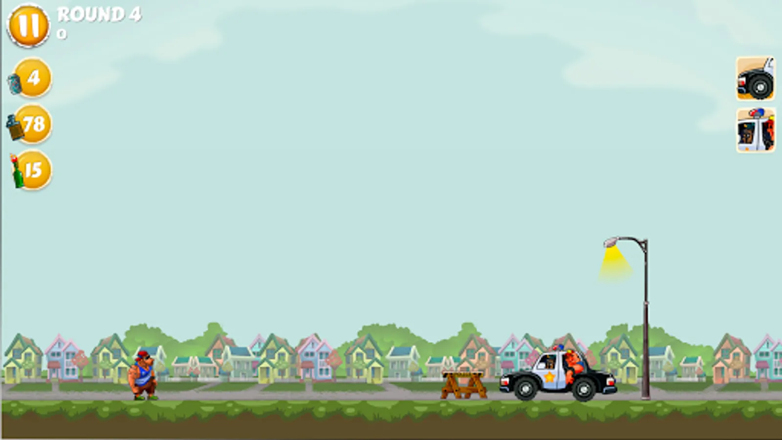 Now, needless to say Ogre’s friends are pissed (in every sense of the word.) Not only are they drunk, now they’re angry. So, naturally, they have to get him out of custody. That’s where you come in. You have to help Ogre’s friends throw their beverage of choice at the cops and knock them out. You need to take out everyone and everything. That includes dogs, horses, squad cars, monster trucks, you name it.