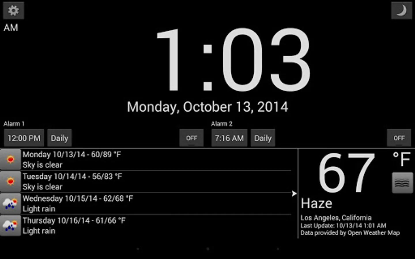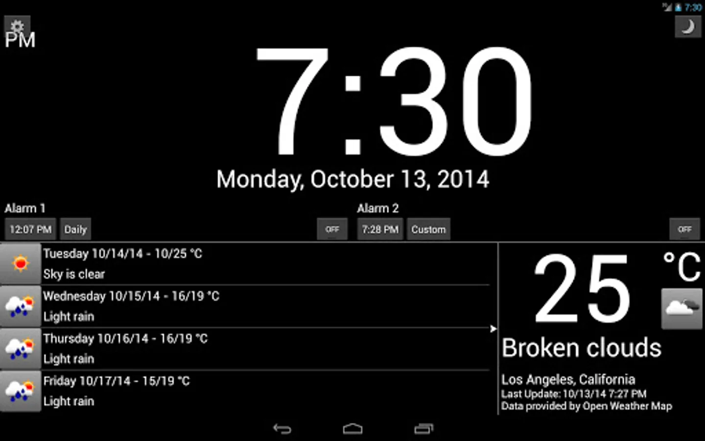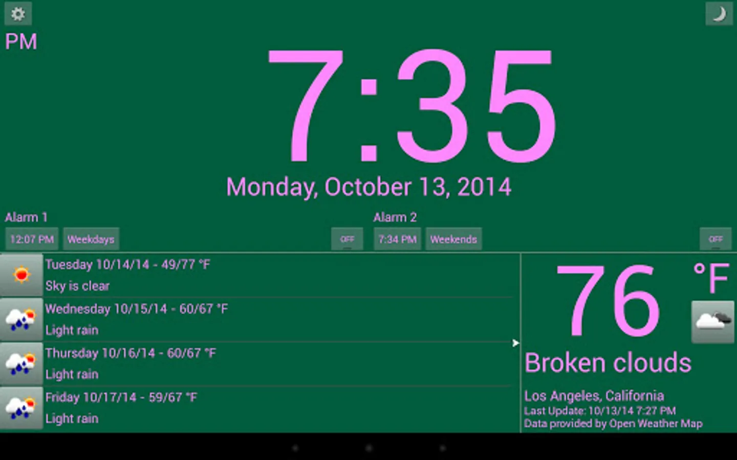 A simple alarm clock with weather. Turn your tablet into a desktop alarm clock and cut down on the clutter. Perfect for a bedside alarm clock when used with a dock or stand.