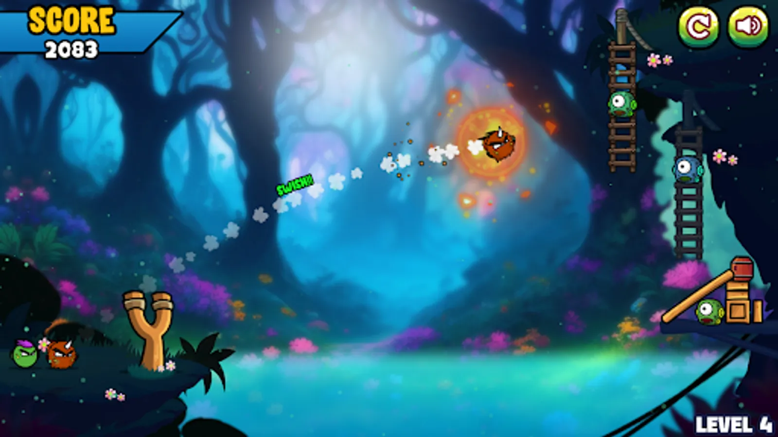 By employing the slingshot, the player must skillfully aim and launch the birds towards the pigs' structures, endeavoring to topple them and emerge victorious against the swine. These structures are constructed from an assortment of materials, including wood, stone, and ice.