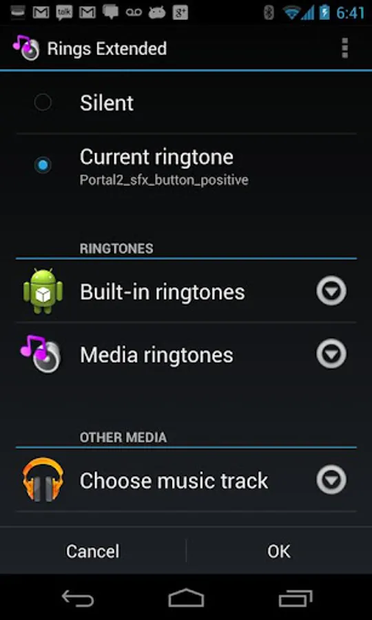 Replaces the standard ringtone picker with a new one that makes it easy to select from installed music tracks & other sounds. Just go to Settings or an application's settings for a ringtone and you will be prompted to use Rings Extended.