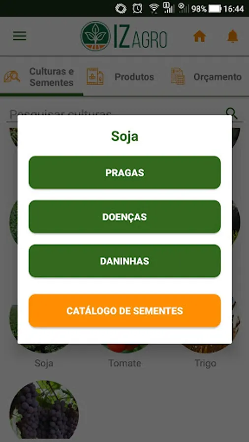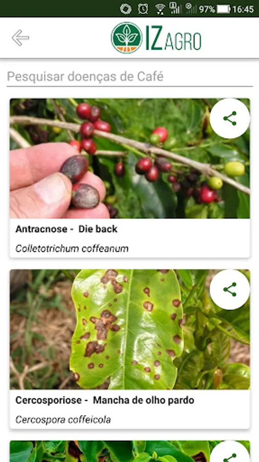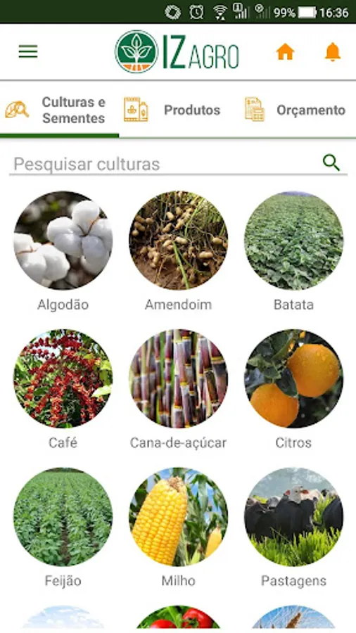 IZagro allows users to make free estimates of agricultural inputs and find various information related to the themes of the crops of interest, helping to control pests, diseases and weeds.