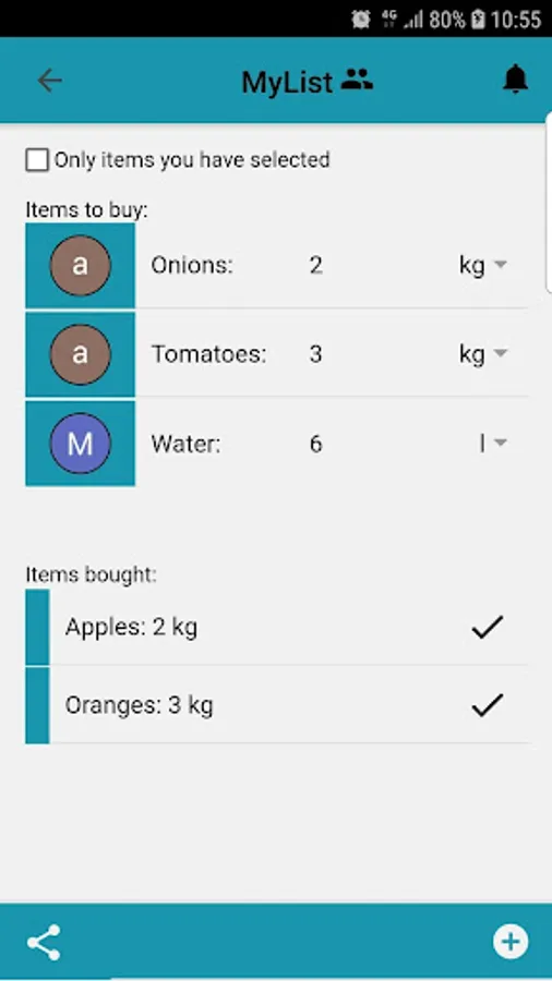 Simply create a list, share it with others, add items to the list, let others know which item you will buy, add the price of the item after you buy it and see how much money each user of the list must pay or get.