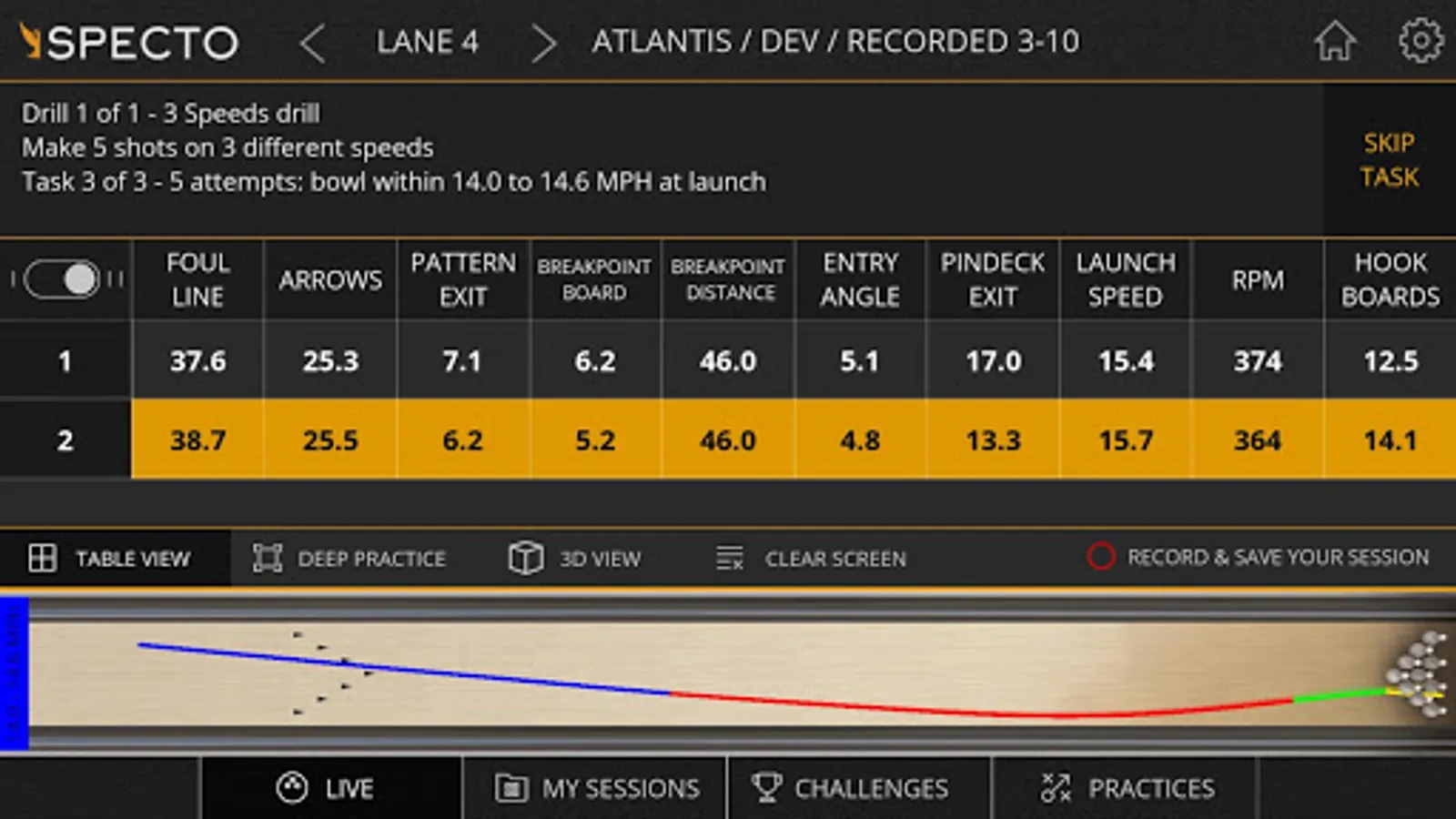 KEGEL SPECTO Bowling™ does not only provide shot related data to bowlers and coaches but also provides amazing practice tools to allow you to focus, practice efficiently and improve faster. You can easily evaluate your performance with our before and after reports and choose the right path to follow.