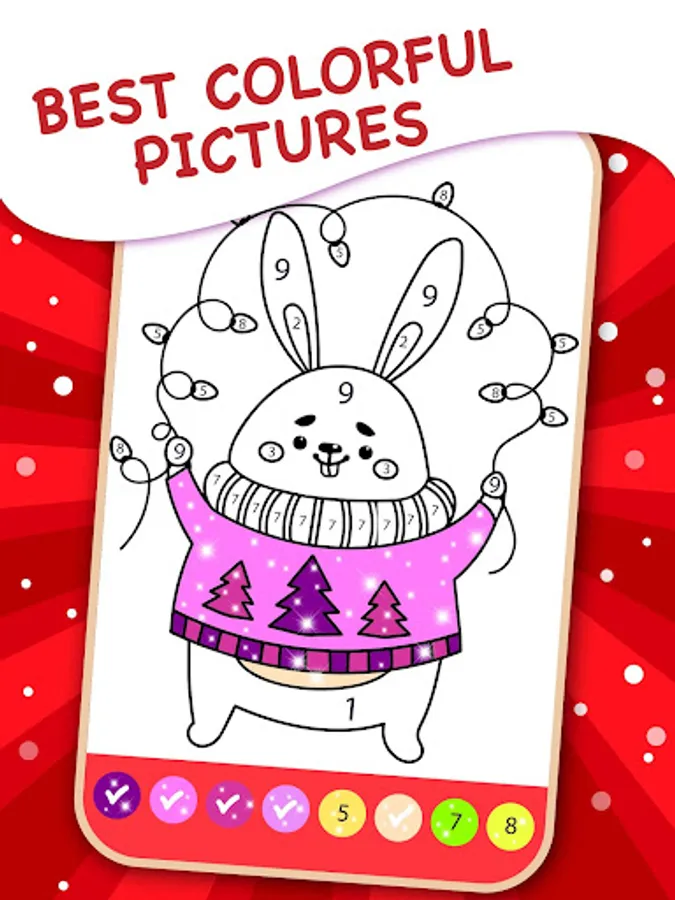 Inside the New Year Coloring app by numbers, you'll find your favorite characters and the most cherished symbols of this festive season. The drawing process will bring every child a feeling of the approaching New Year.