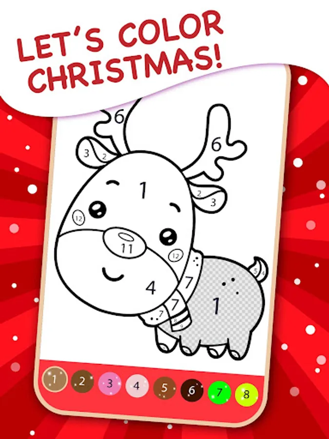Children Happy Christmas Coloring is designed to be simple and enjoyable, making it perfect for kids and adults alike. Color your pictures by numbers and send your heartfelt Christmas greetings to family and friends.