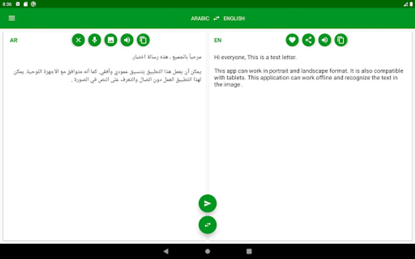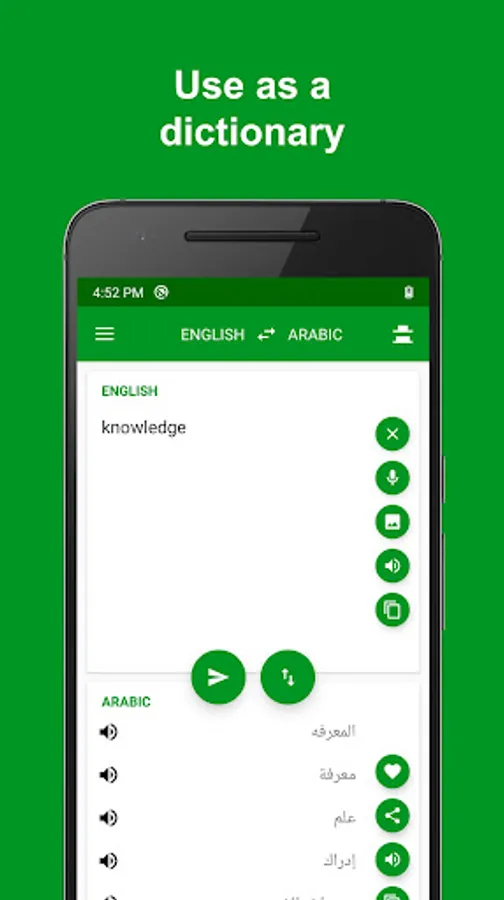Arabic - English translator is an application that help you lookup dictionary and translate words and sentences from Arabic to English, or translate English to Arabic too. This translator is free and you are able to translate words or sentences quickly, conveniently and easily.