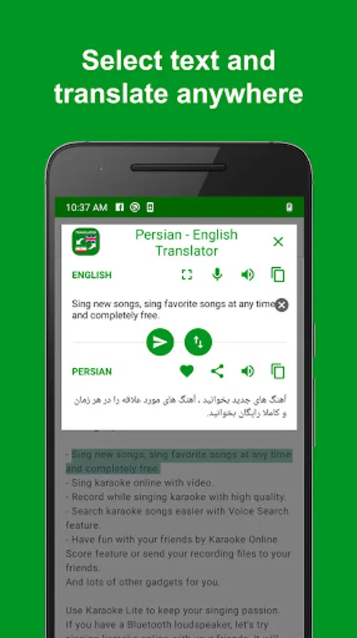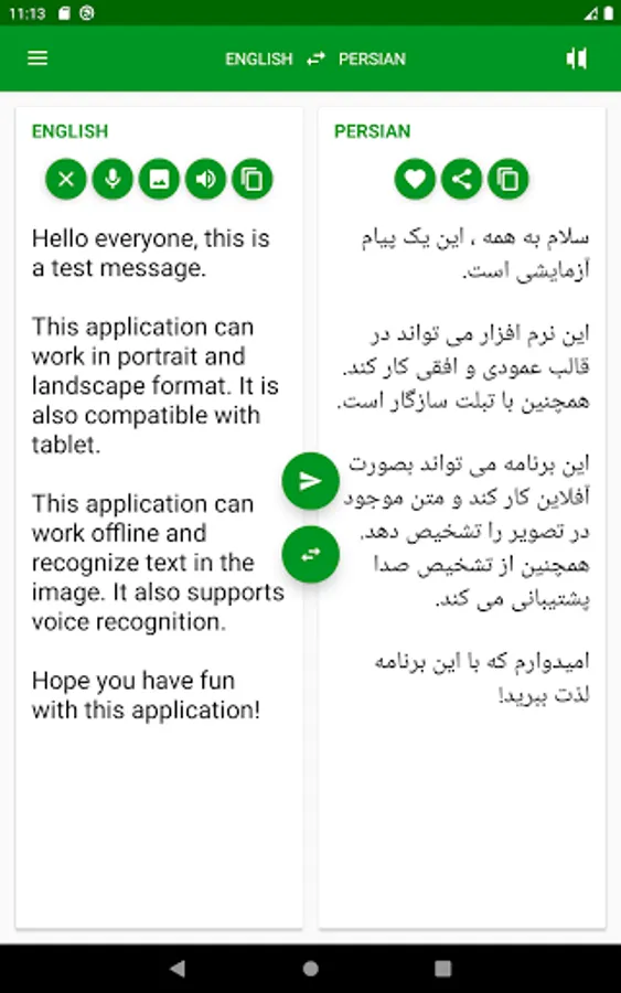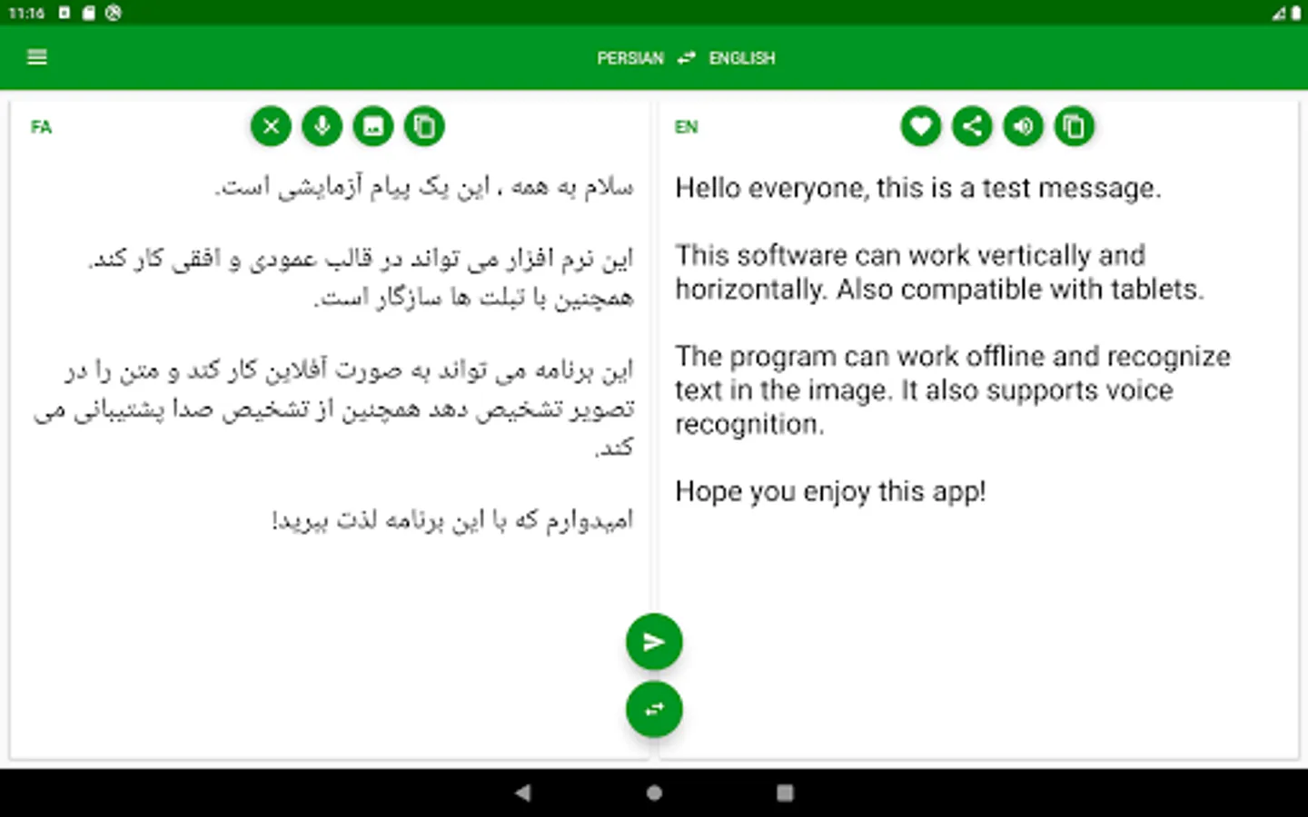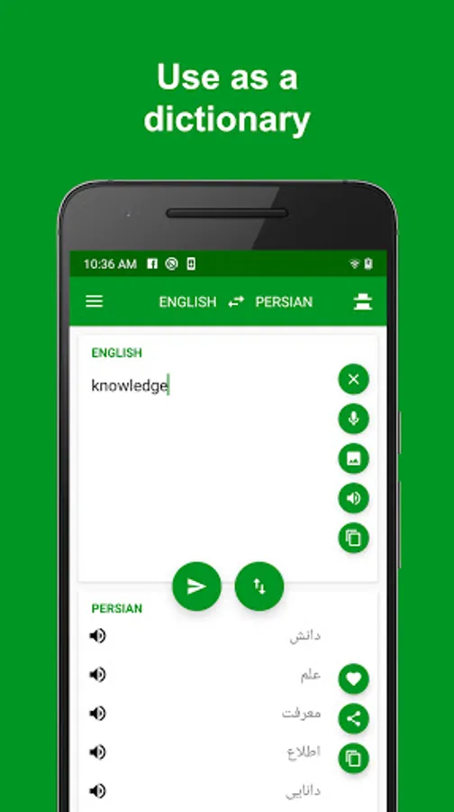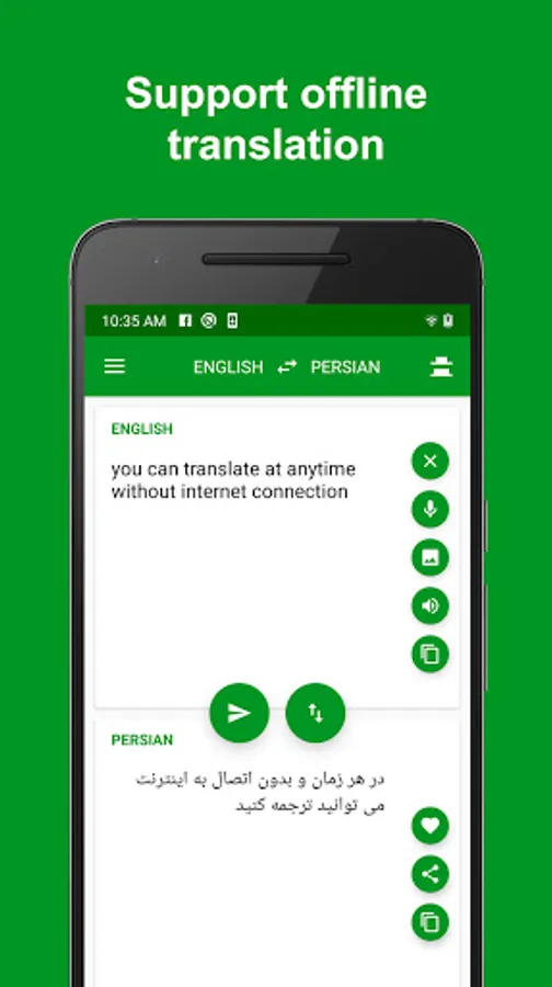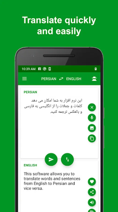Persian - English translator is an application that help you lookup dictionary and translate words and sentences from Persian to English, or translate English to Persian too. This translator is free and you are able to translate words or sentences quickly, conveniently and easily.