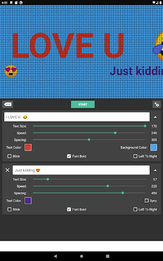 Let's try LED Banners - Text Scroller to create your interested banners and messages.