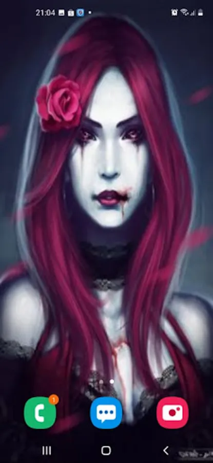 - Long press on the screen until the menu exits. Select the category "Wallpapers", go to "Vampire Girl Wallpaper", open it and choose your favorite wallpaper.