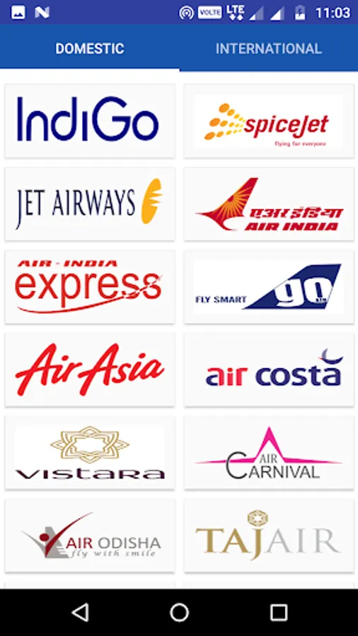 Indian Airlines is very useful app for booking and searching the flights online. It has most Indian popular airways portals like IndiGo, Jet Airways, SpiceJet, Air India, Air Asia, Go Air, Emirates, Air Vistara, Qatar Airways, Etihad, British Airways,Emirates,Lufthansa,SWISS etc. at a place.