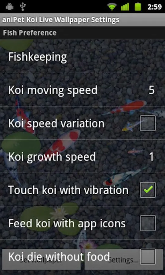 HOME/MENU/Wallpaper/Live Wallpapers/aniPet Koi