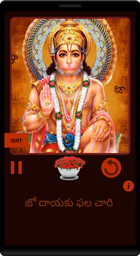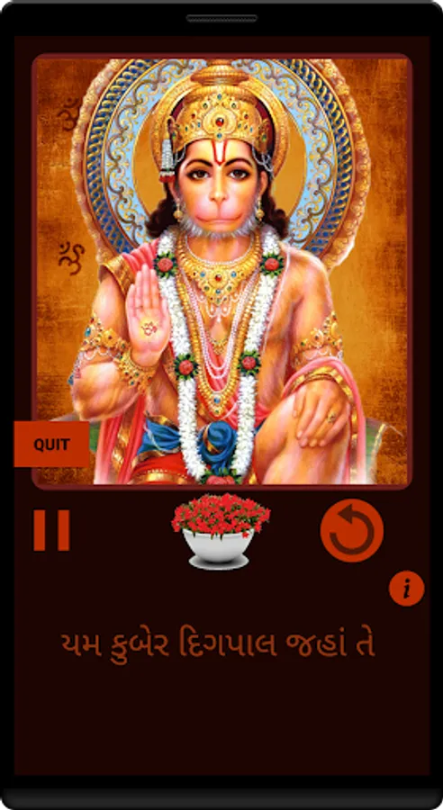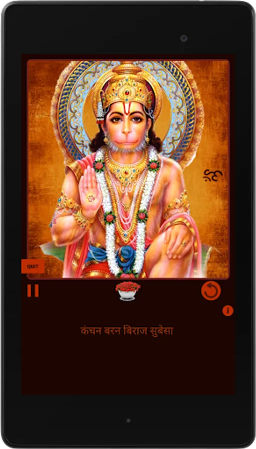 With HD clarity Hanuman Chalisa audio and lyrics, you can listen to full Hanuman Chalisa in gujarati without having internet connection. Many Hindus believe that chanting or listening to Hanuman Chalisa in hindi invokes Hanuman's divine intervention in solving several problems. This app includes full Hanuman Chalisa in telugu song which was originally written by Tulsidas with translation in Hindi, English and others. Among many Hanuman songs, Shree Hanuman Chalisa in kannada is the best to meditate on.