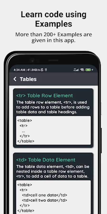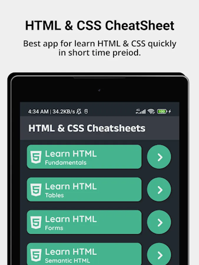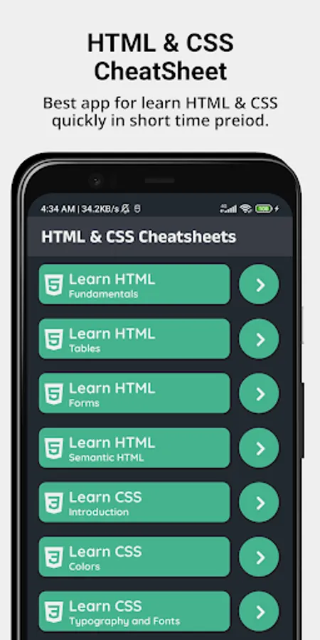 Our HTML & CSS Cheatsheets app is designed with 200+ HTML & CSS Examples to make your learning easier than ever.