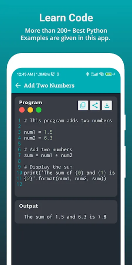 Our Python Programs app is designed with 200+ Python exercises with outputs.