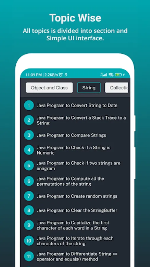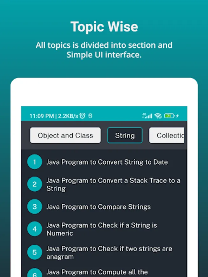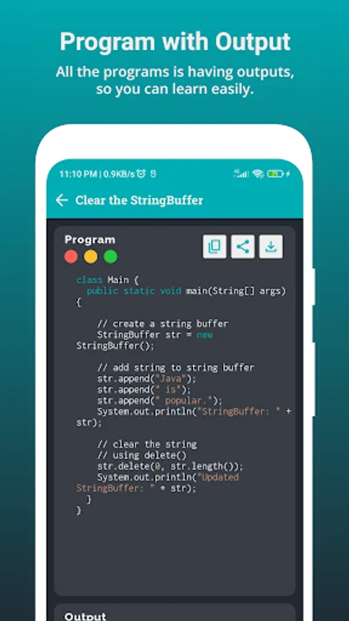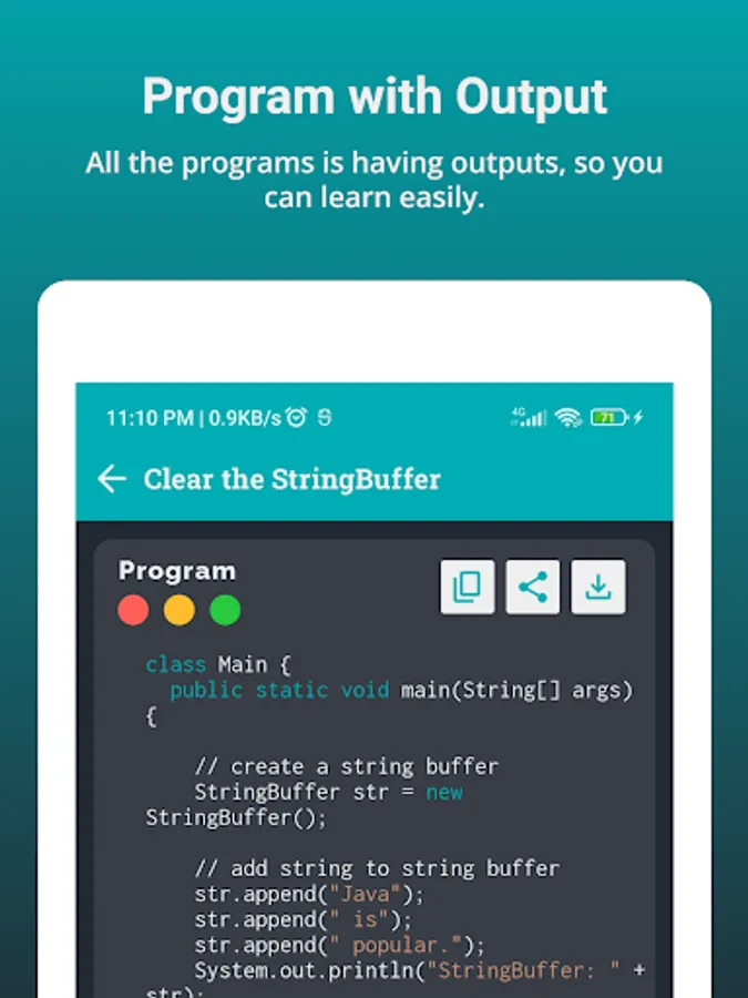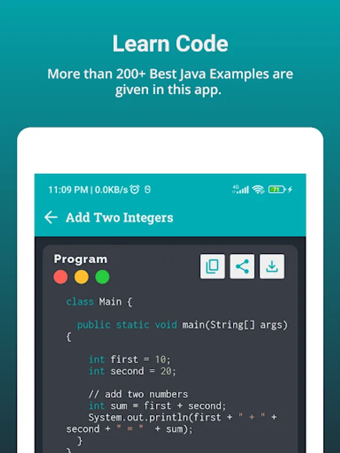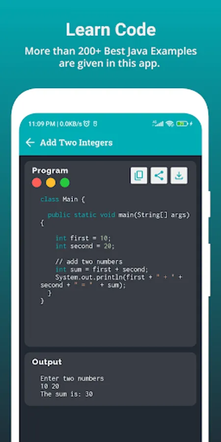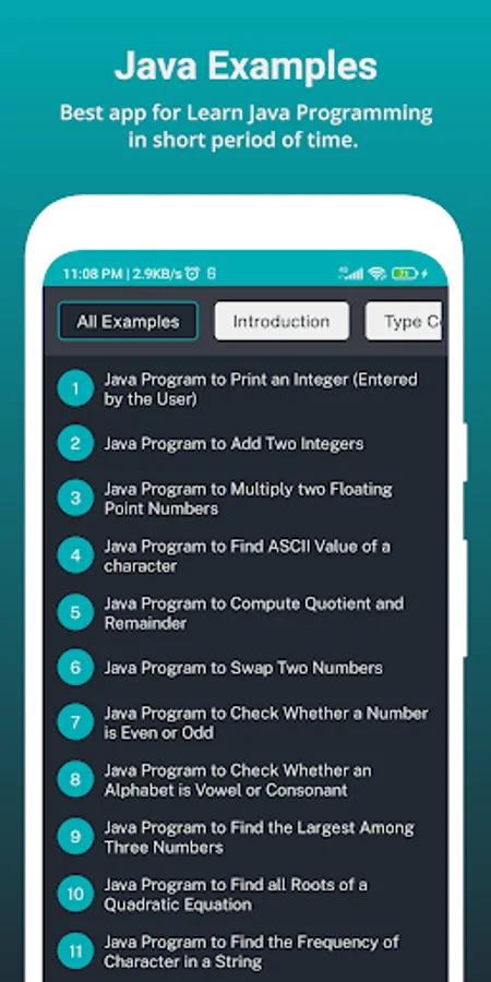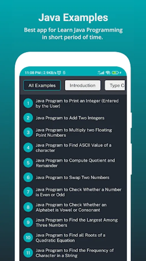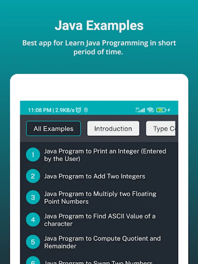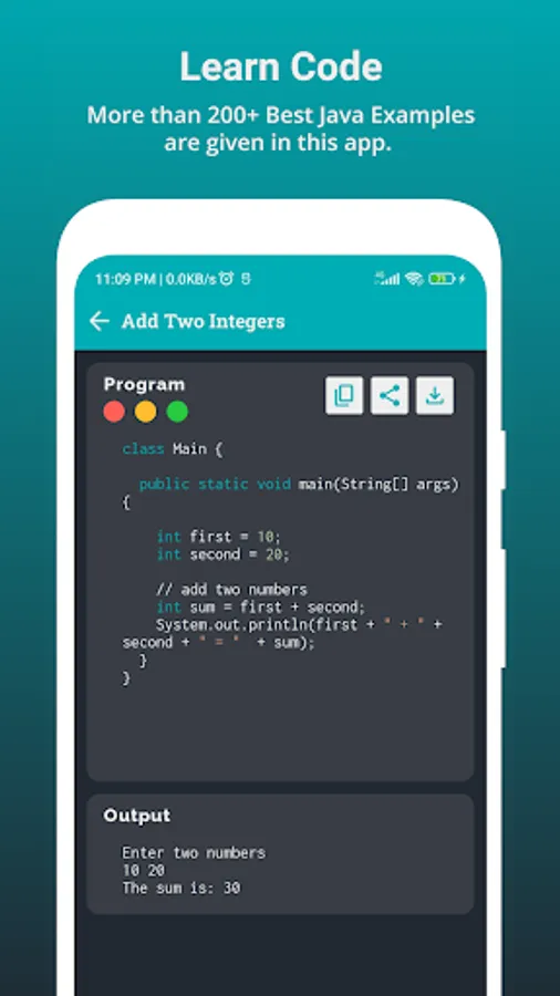 Our Java Programs app is designed with 200+ Java exercises with outputs.