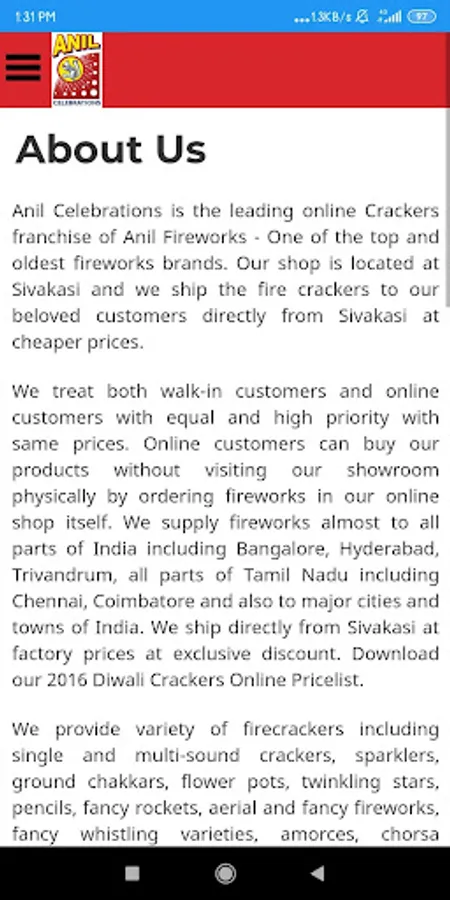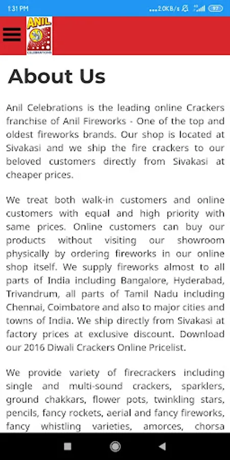 Anil Fireworks Introduce Various New Firecrackers in this diwali 2020. Such as One Sound Crackers, Fancy Crackers, Fancy Rockets, Sparklers, Eye Catching Flower pots, Kids Special Crackers, Crackers and Gift Boxes in your budget.