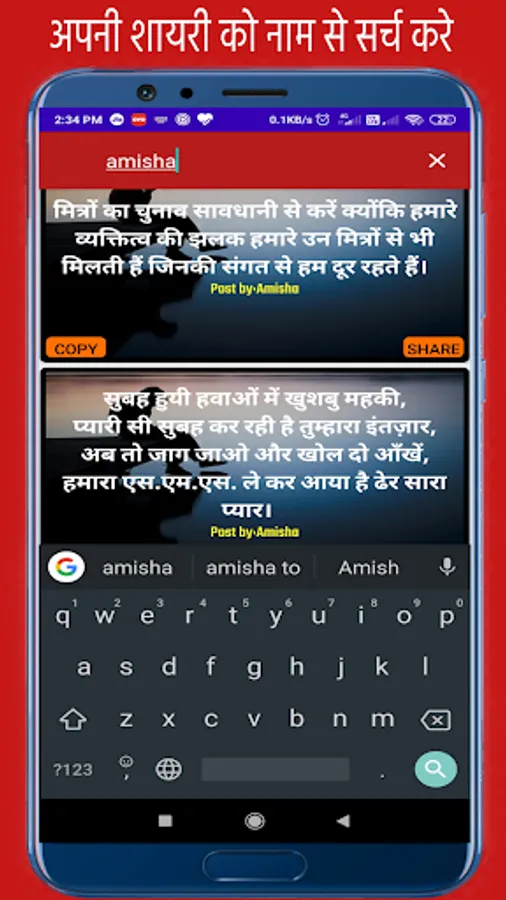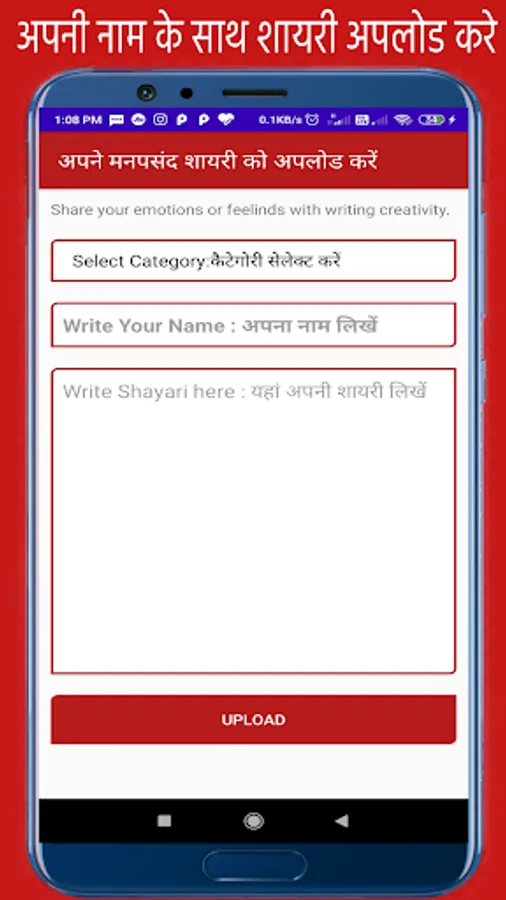 * इस एप में आप अपनी शायरी को अपने नाम के साथ अपलोड कर सकते है और उसे दोस्तों के साथ शेयर कर सकते है
