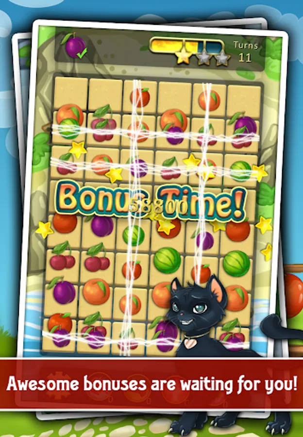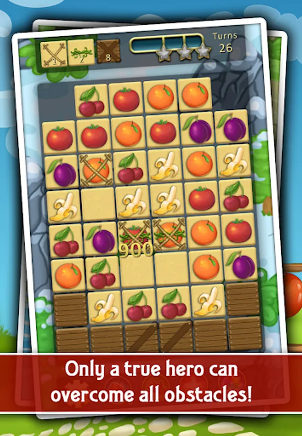 Combine three vegetable or fruit in a row to collect them! Overcome obstacles in the form of weeds, boxes and cables, clean them all the farm!