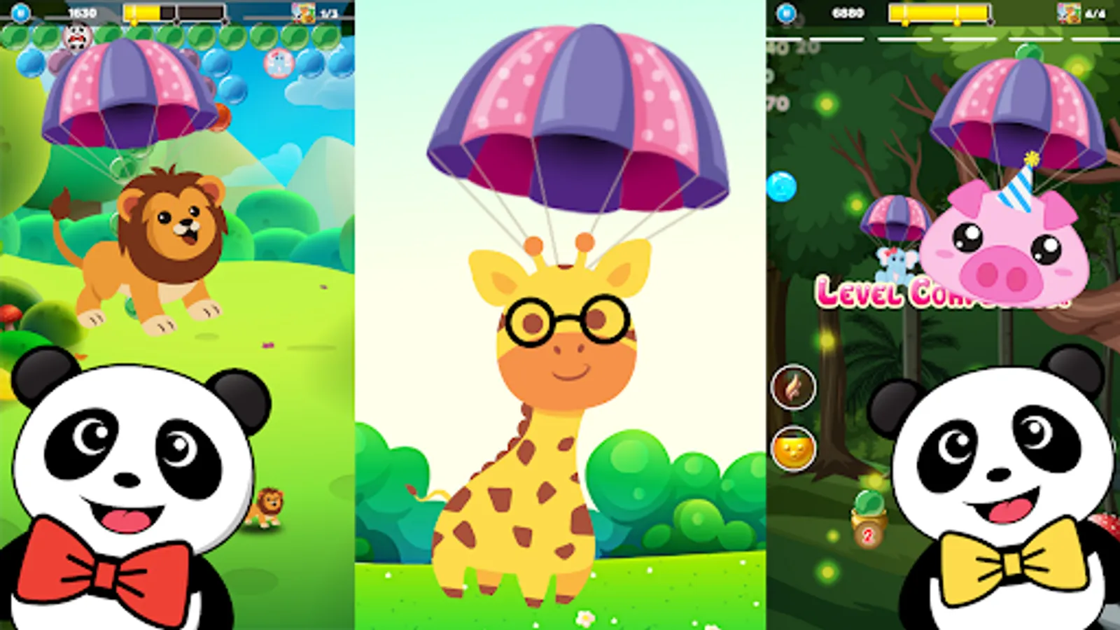 - Unlock the new episode by swiping and popping and Matching the animals cartoons elephants, lions, panda, fox, crocodile, giraffe, pigs, rabbits, owl bubbles.
