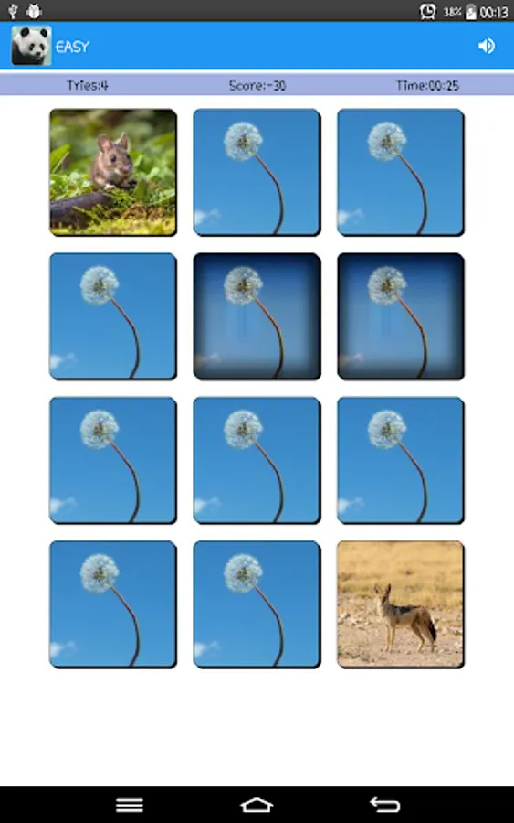The aim of the game is to find the same animals as soon as possible. The same matching animal pairs become invisible. The game will be completed when all animal pairs are found. At the end of the game, score, duration, number of trials, bonus and total score are shown.
