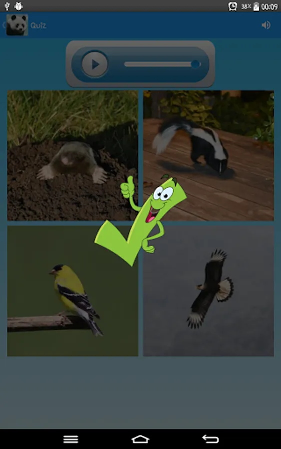 ¬ There are 4 different mini examinations in the quiz sections. Children can test their knowledge with a 5-question mini-exam. Different mini-exam types help to reinforce the teaching of animals and their sounds and the development of children's motor skills.
