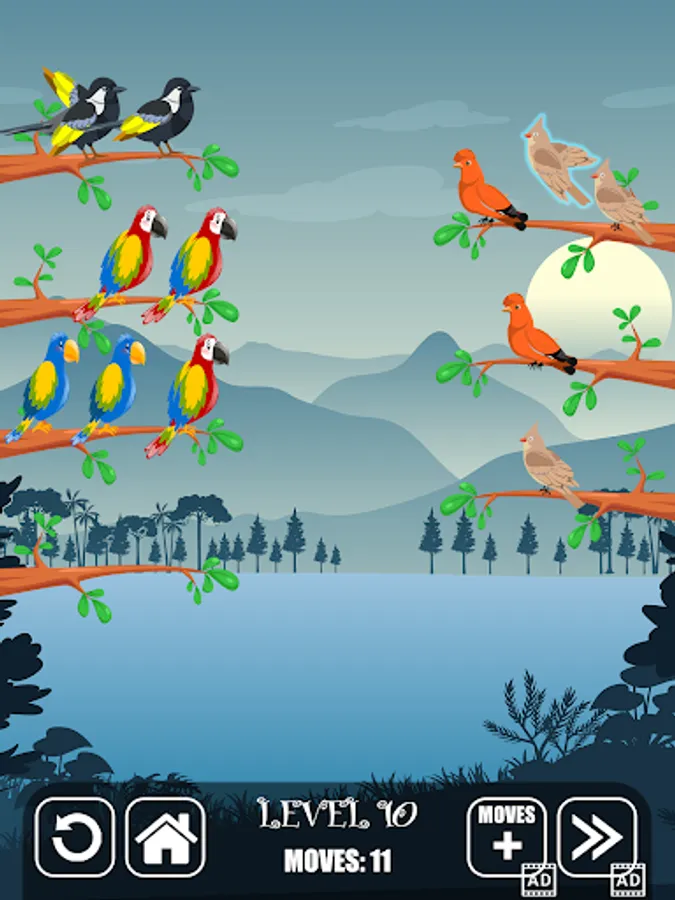 Bird sort puzzle is a new style sort of sorting game. There are lots of different colorful birds. You can hear the beautiful bird sounds and music while playing this relaxing bird-sorting game. Bird sorting puzzle game will help the players in enhancing puzzle solving skills and memorizing capabilities. This amazing bird sorting colorful game is fun to play game. The interface of the bird sort puzzle color game is very simple, and bird sorting is easy to play. As you move further into the levels, the bird sorting puzzle will be challenging. the gameplay. Your sorting challenge is to move the birds into the branches according to the bird species or bird color. The difficulty of bird sort puzzles will slowly grow as the number of colored birds sort increases in this bird sort puzzle game. These bird sort puzzle games will make sure you enhance your IQ level as well as kill boredom in these bird sorting games.