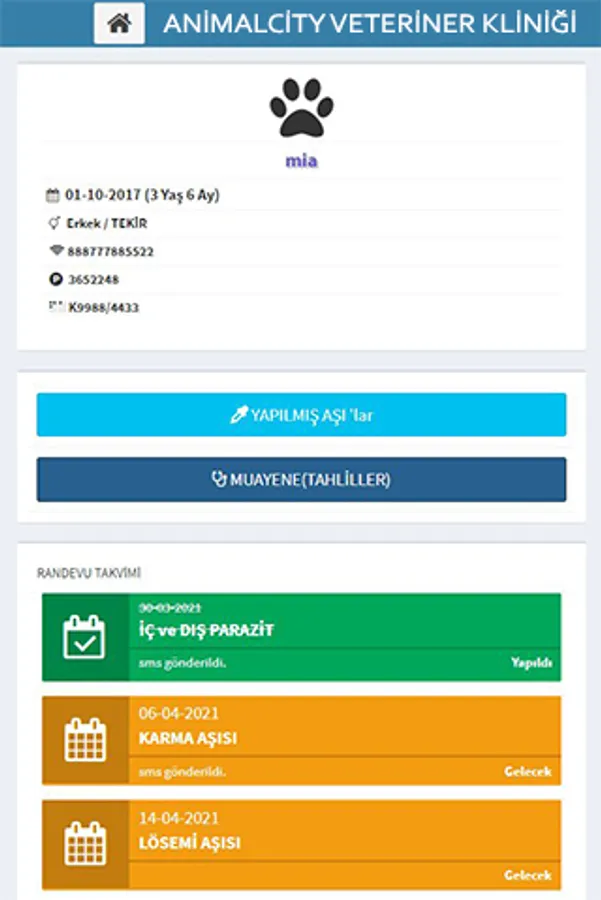 Animal City Veterinary Clinic patient/vaccine follow-up program (Only our registered patients can use it).
