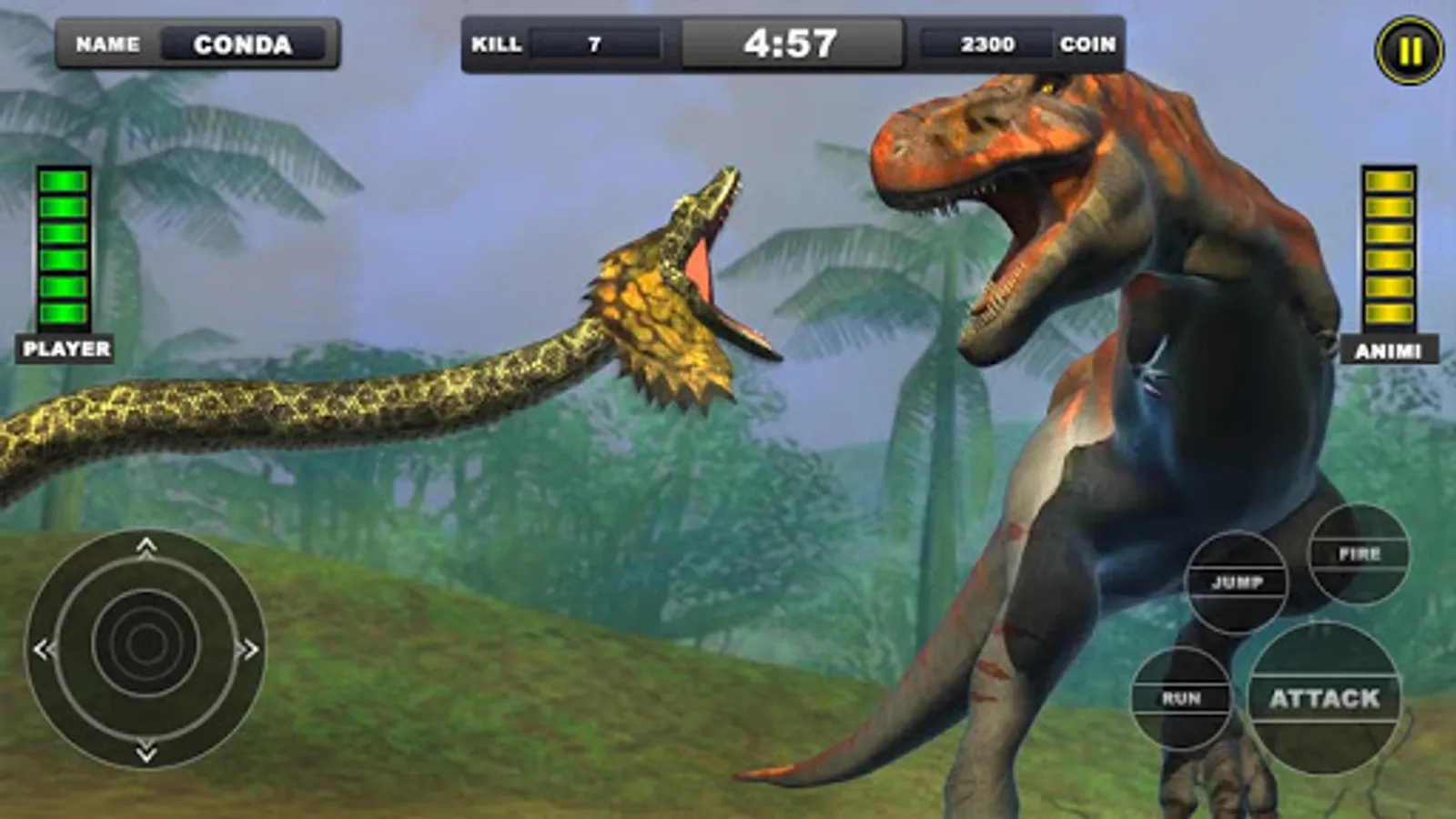 • Realistic anaconda snake vs Dinosaur simulation & snake sim.