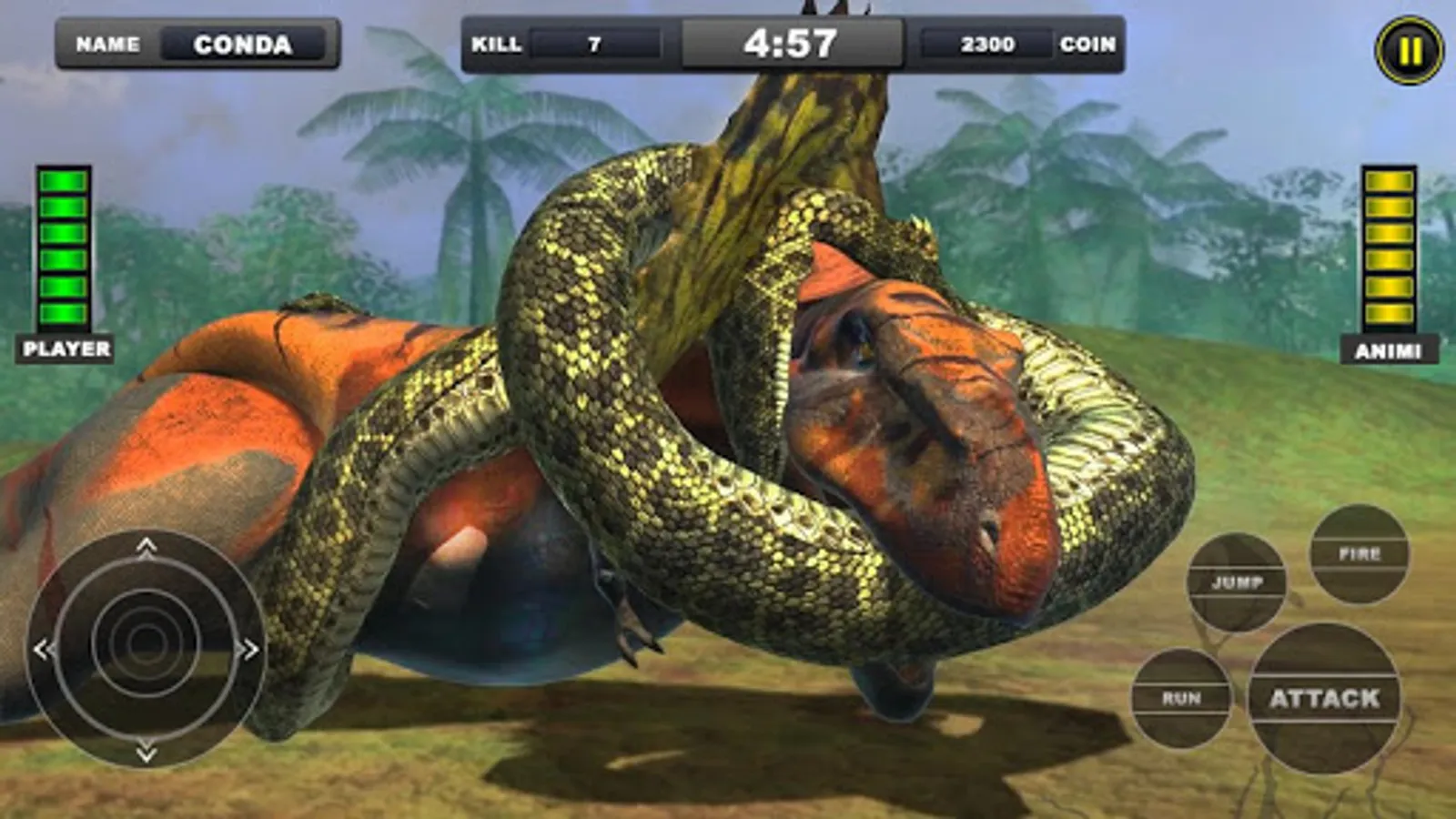 Play as deadly anaconda beast vs. Dinosaur! This predator is hungry! Great snake is always hungry just like this angry anaconda vs. Dinosaur fights.