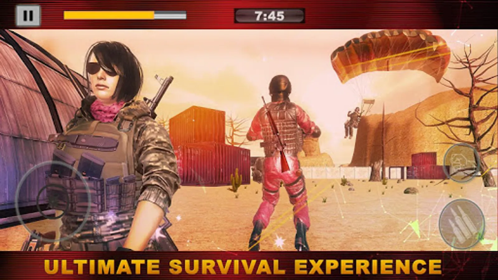 This intense action Battle Gameplay of modern world war TPS Squad Battleground lets players of firing squad parachute onto an island in a survival game, loot and scavenge weapons, supplies and other survival war equipment for ultimate survival in shooting battleground games. The squad shooter in shooting battleground has to win this Last Survival Game. Defeat your rivals in epic firing game and get ready to explore the battleground land, loot, survive, craft, shoot and do whatever it takes to survive in TPS firing squad battleground.