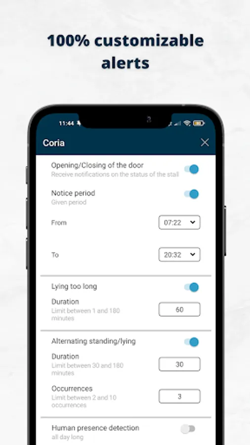 - An analysis of your horse's behavior and customized notifications in case of anomaly