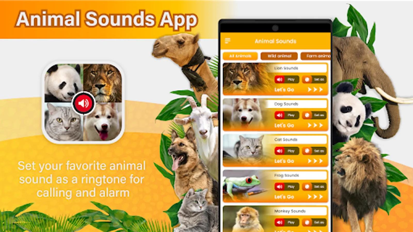 Welcome to Animal Sounds, your ultimate guide to the sounds of the animal kingdom! Listen to animal sounds, kingdom lion and lion roar sound. With our app, you can immerse yourself in the world of wildlife and learn about the fascinating creature’s loudest animal on earth that inhabit our planet with animal sounds . From the king of the jungle, kingdom lion to the mighty rattling snake, or sound of whale, we've got you covered. Are you a wildlife enthusiast or simply curious about the sounds of animals? Look no further than Animal Sounds, animal ringtones - the ultimate guide to the fascinating world of wildlife animal sounds. Our Android app features an extensive library of over a dozen animal sounds, animal sounds list including the ferocious roars of the king of the jungle, kingdom lion, the mighty lion, the haunting howls of wolves, the playful barks of dogs, dog sounds or dog barking sound and the gentle purrs of domesticated cats or animal sounds .