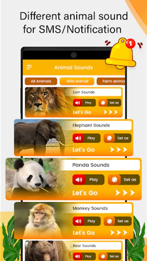With Animal Sounds, you can immerse yourself in the animal kingdom and learn more about these fascinating creatures. Each animal sound is accompanied by interesting facts about the animal, animal ringtones, providing an educational experience for users of all ages.