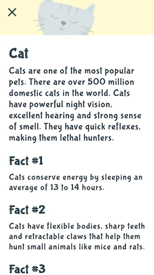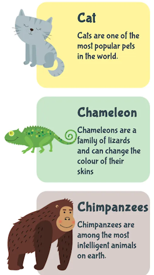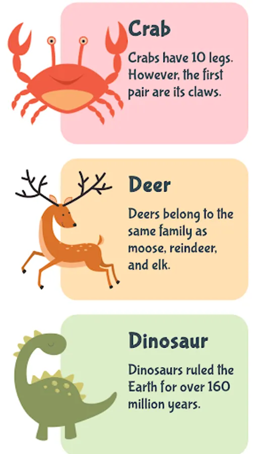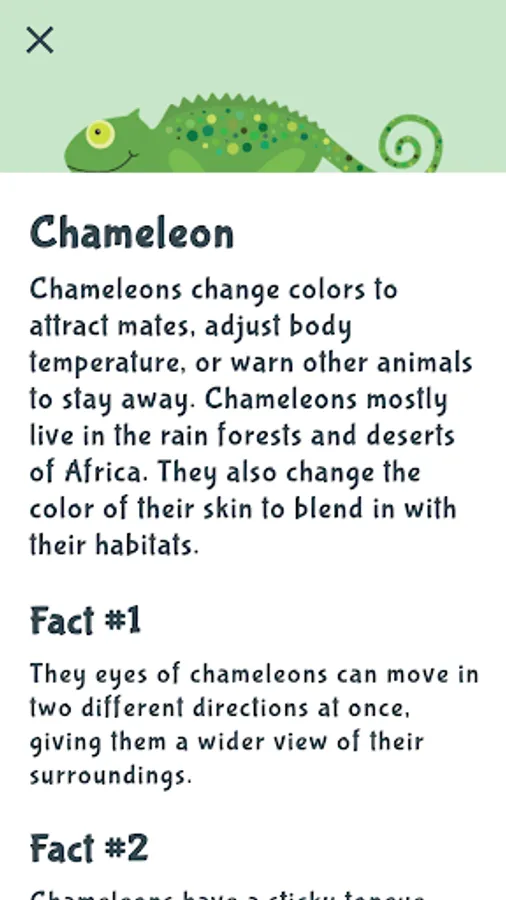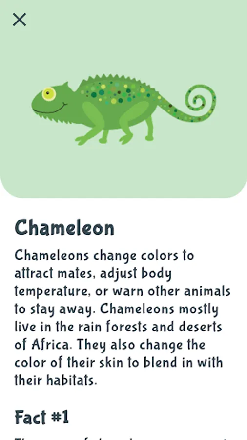 Application to learn animals with your kids - full colorful list of animals, short descriptions, interesting facts about animals and so on.