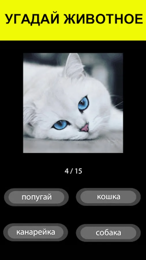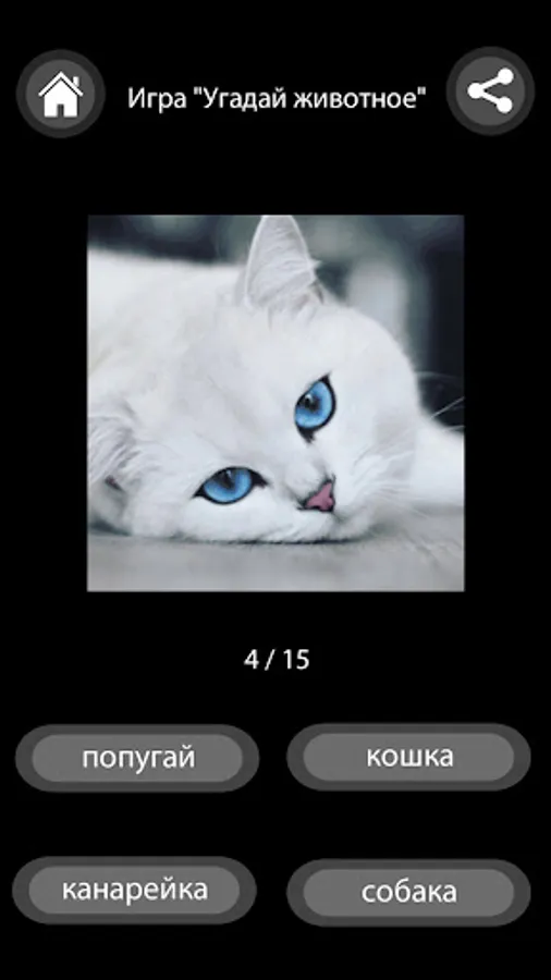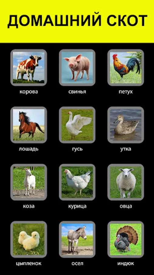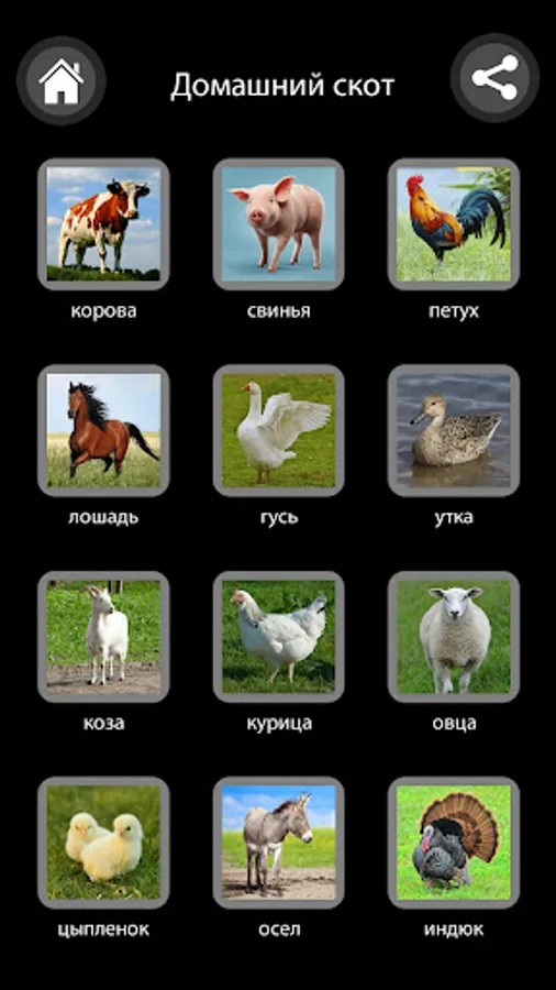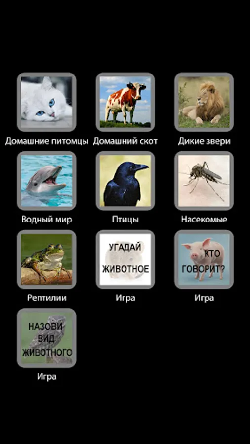 You can select a category of animals and by clicking on the picture with its image you can hear how it speaks, or rather what sounds the meow makes.