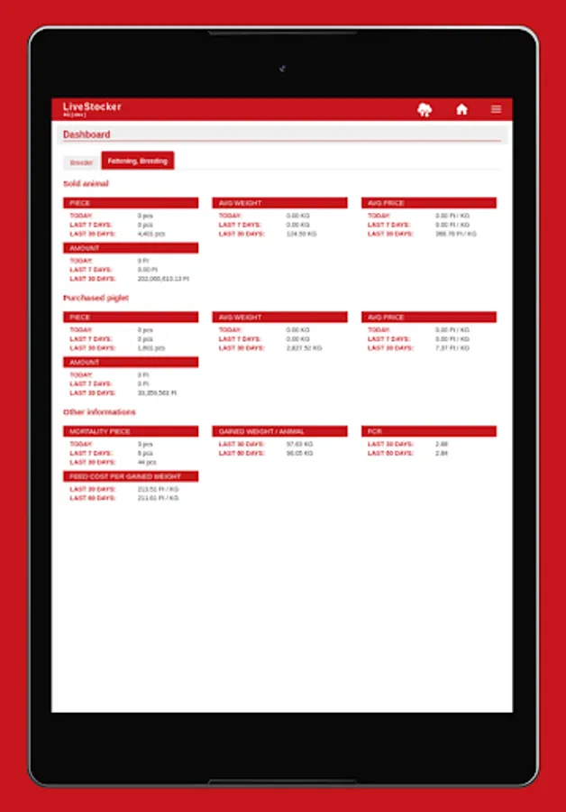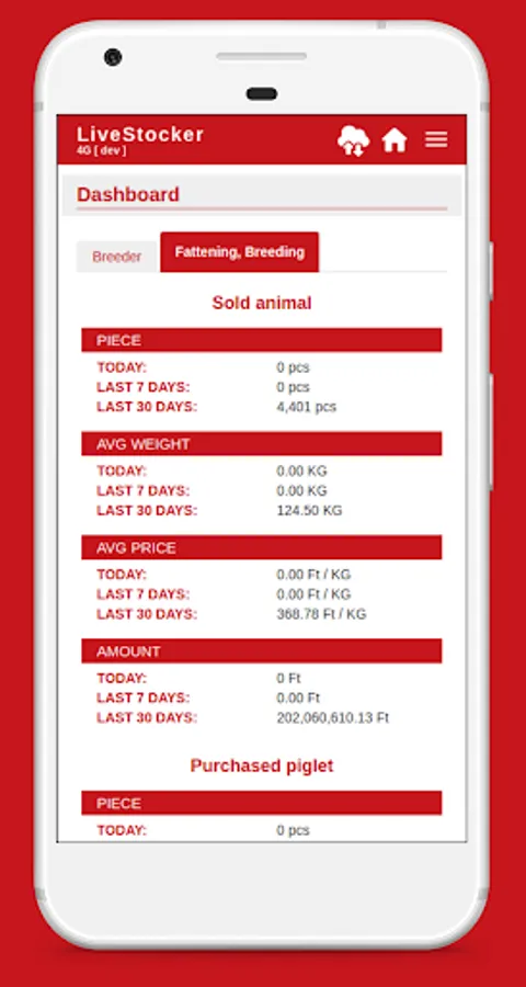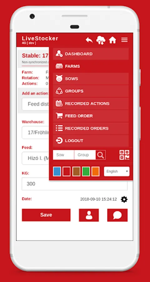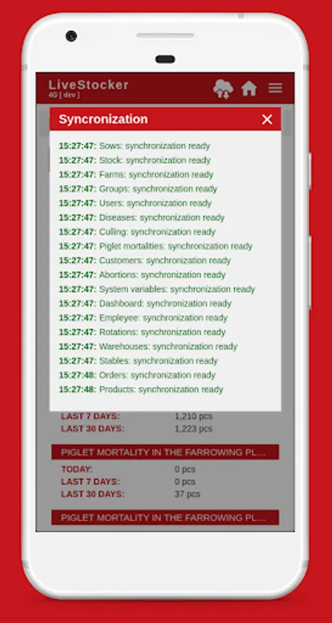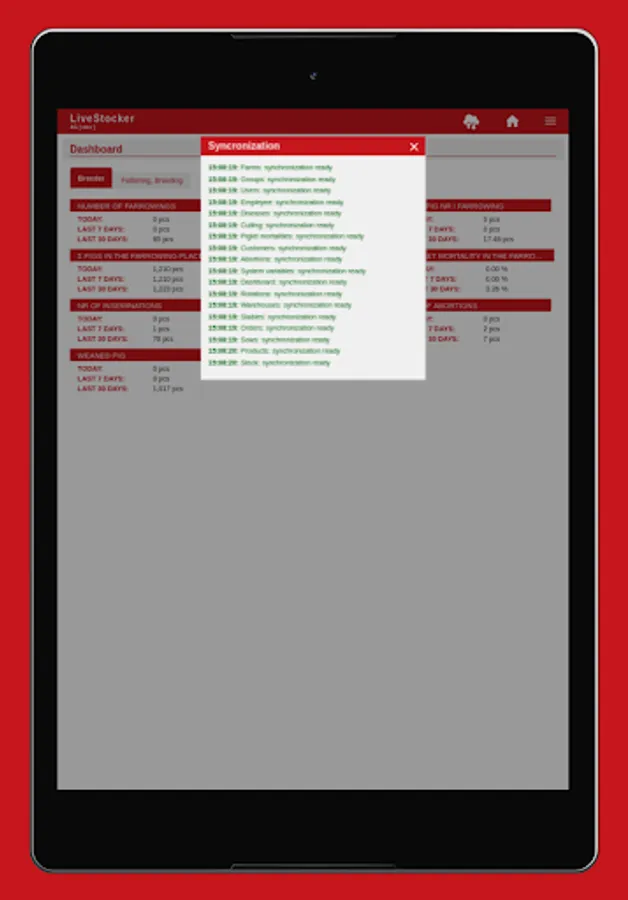 • Listing of farms, stalls, groups, sows belonging to the user.