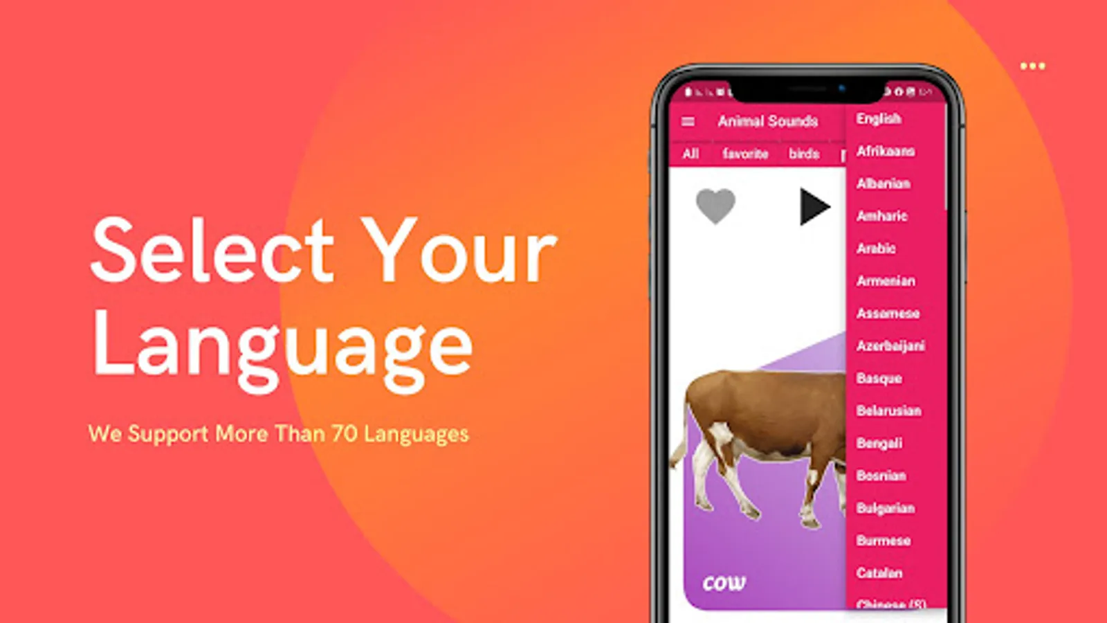 and you can change language between more than 70 languages to display animal names by your language