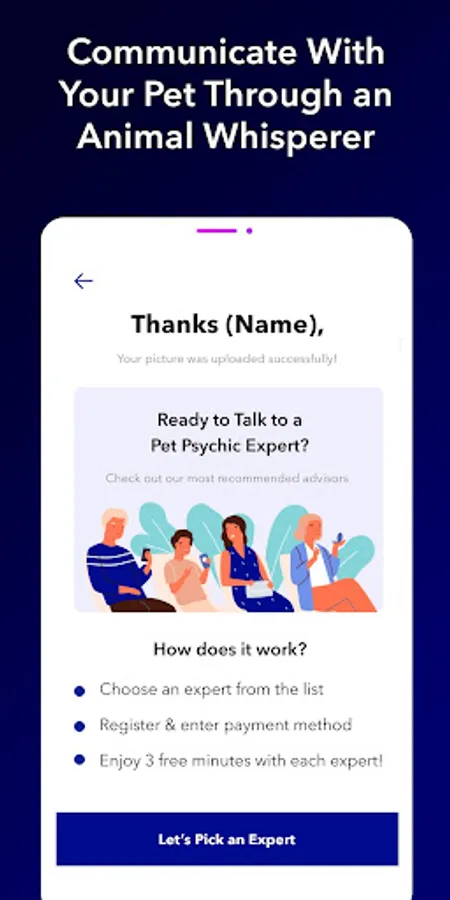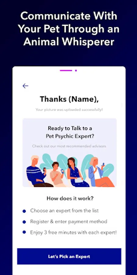 Our Animal Whisperer app makes animal communication simple and easy. Finally, you’ll be able to speak with animals and gain a deeper understanding about your pet’s behavior using our expert pet reader. Simply download the app, upload a photo of your pet, and talk to an online expert pet psychic of your choice to have all your questions answered. Your first 3 minutes are FREE!