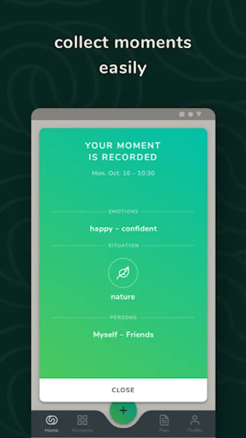 The app accompanies you on the way to more mindfulness. Use it to capture moments that touch you and always ask yourself the question "How am I doing?"