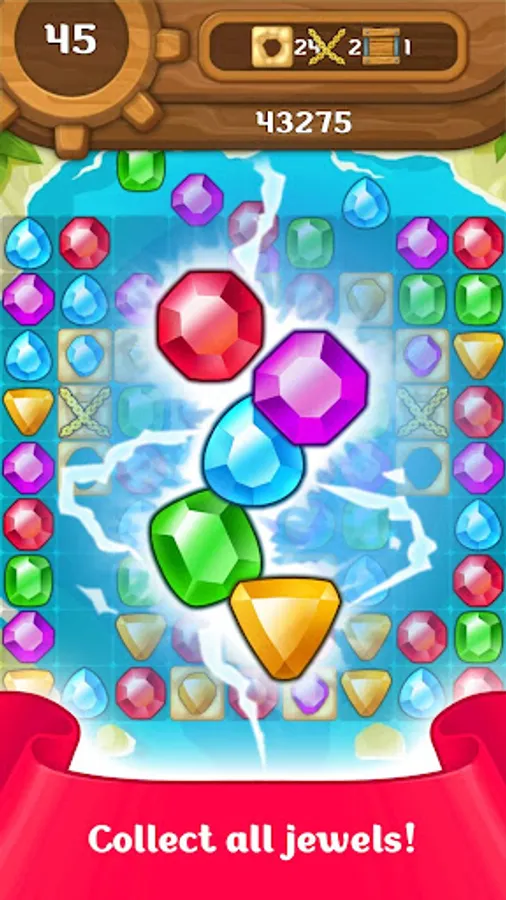 In the game, you need to swap jewels so that you can collect three-in-a-row!