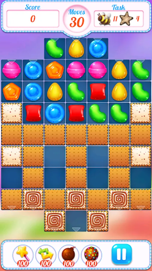 Move the candy so that you can combine at least three of the same in a row, thus overcome the obstacles and pass fascinating levels! Thoroughly think over the moves to combine candies into bonuses and overcome complex barriers on your way!