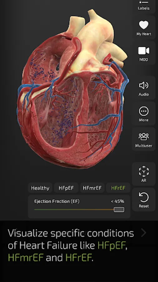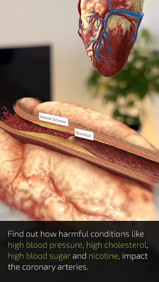 Explore the human heart like never before. Rotate and scale the high-resolution heart floating in front of you and feast your eyes on highly detailed 4k textures.