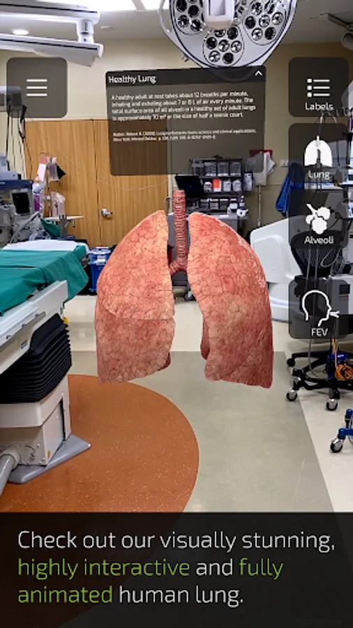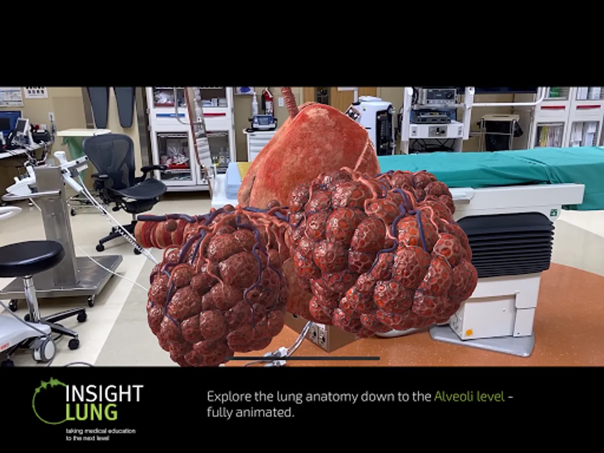 Using ARCore, INSIGHT LUNG lets users easily scan their physical surroundings and place the three-dimensional lung without the need of predefined markers. Our virtual assistant ANI will guide you through various states of the lung.